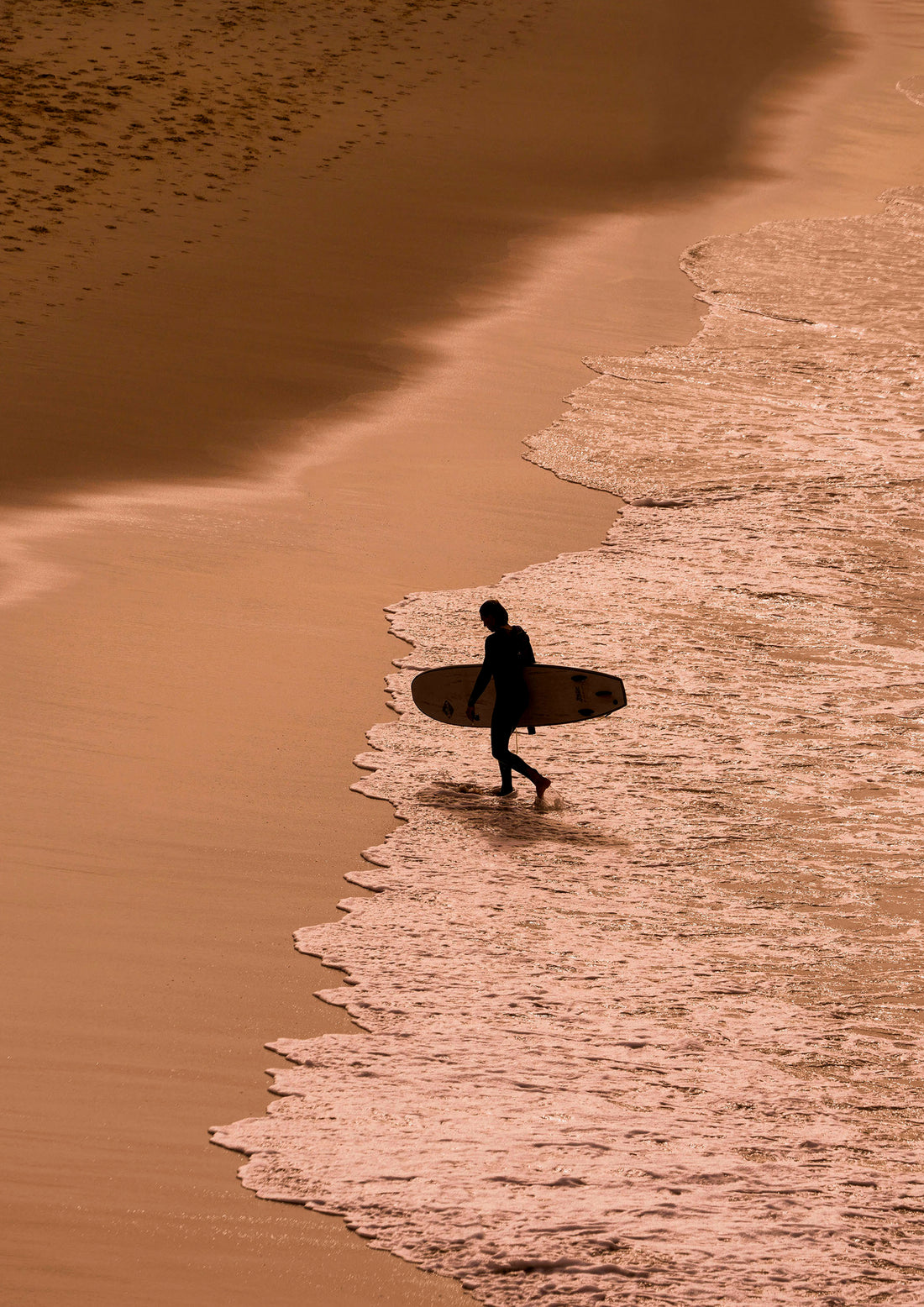 A lone surfer exits the ocean at Bondi Giclée Canvas Prints – 360gsm Our archival...