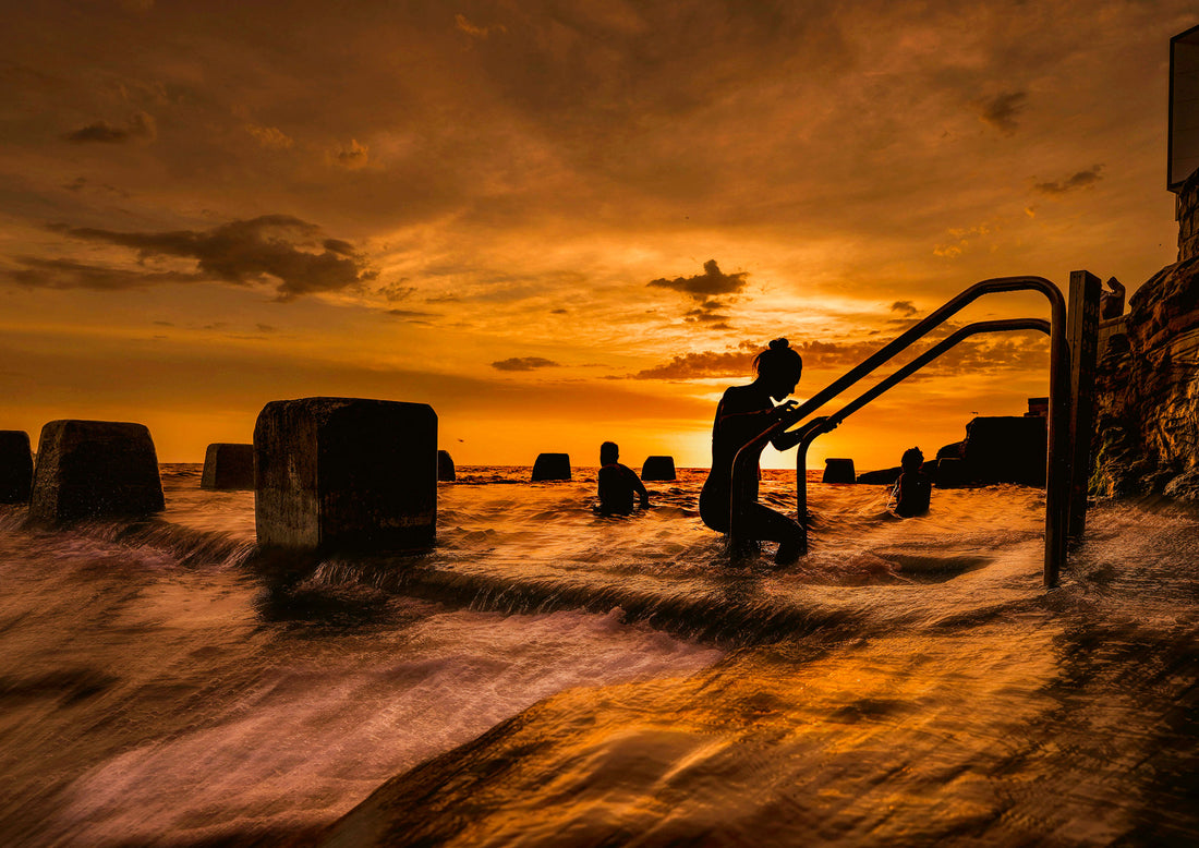 A ghostly figure at Bronte Ocean Pool at Sunrise Giclée Canvas Prints – 360gsm Our...