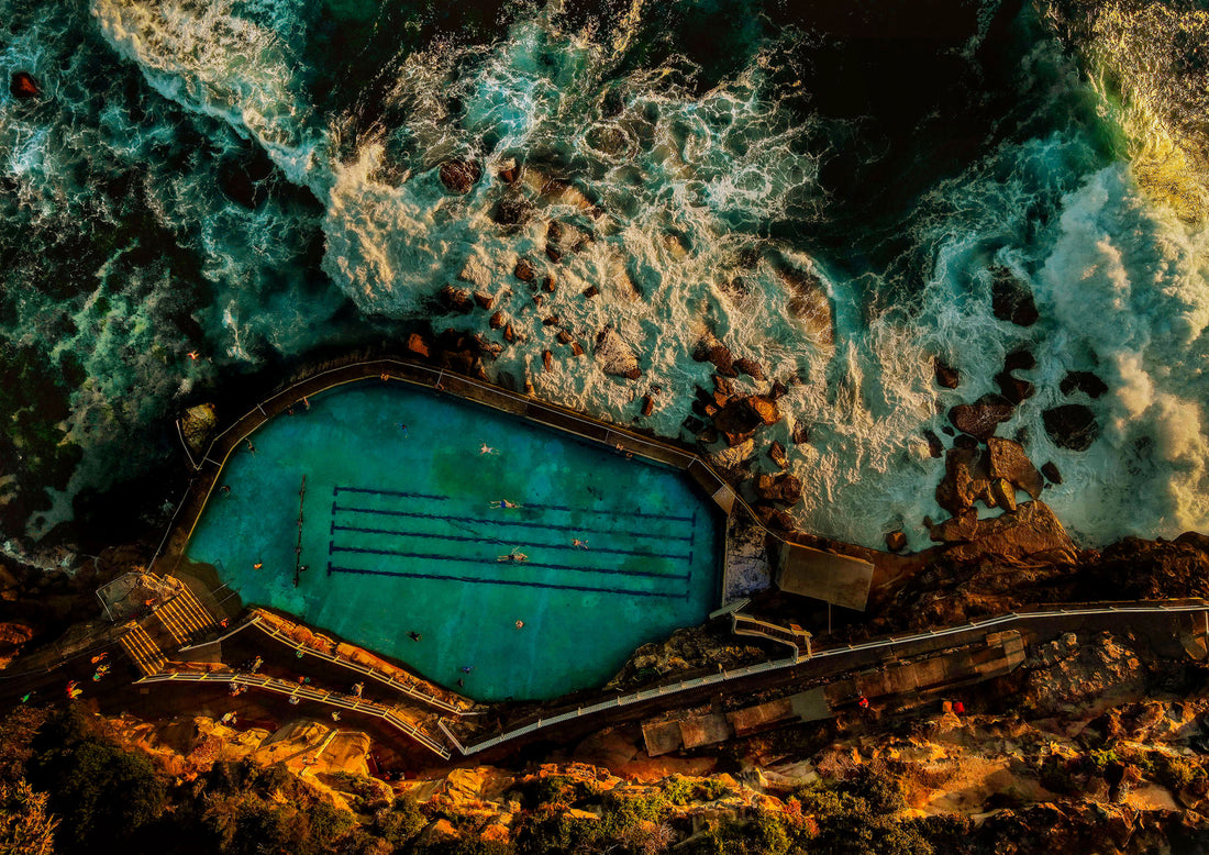 Drone Image of Mona Vale Ocean Pool Giclée Canvas Prints – 360gsm Our archival bright...