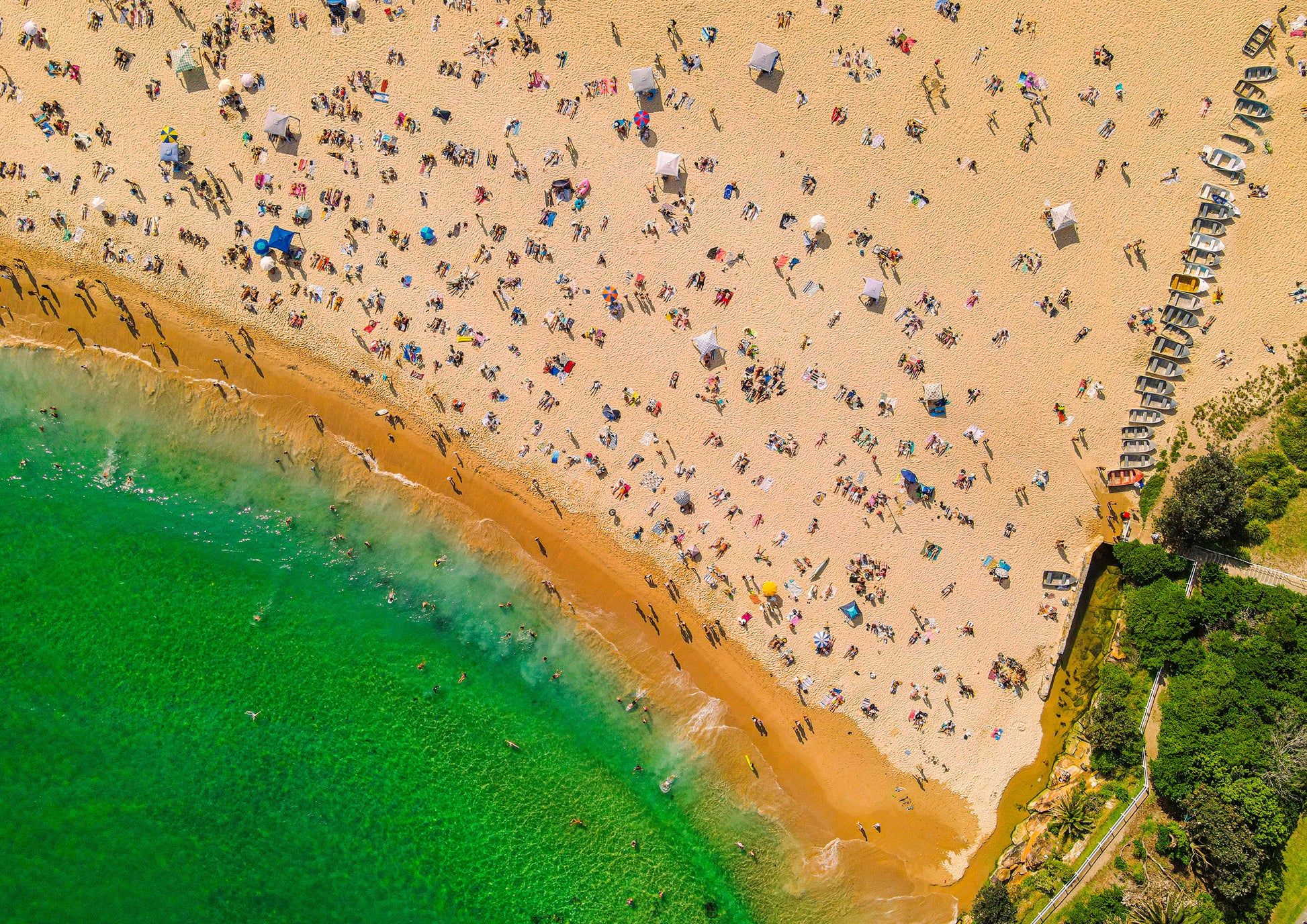Drone image of a busy Coogee beach